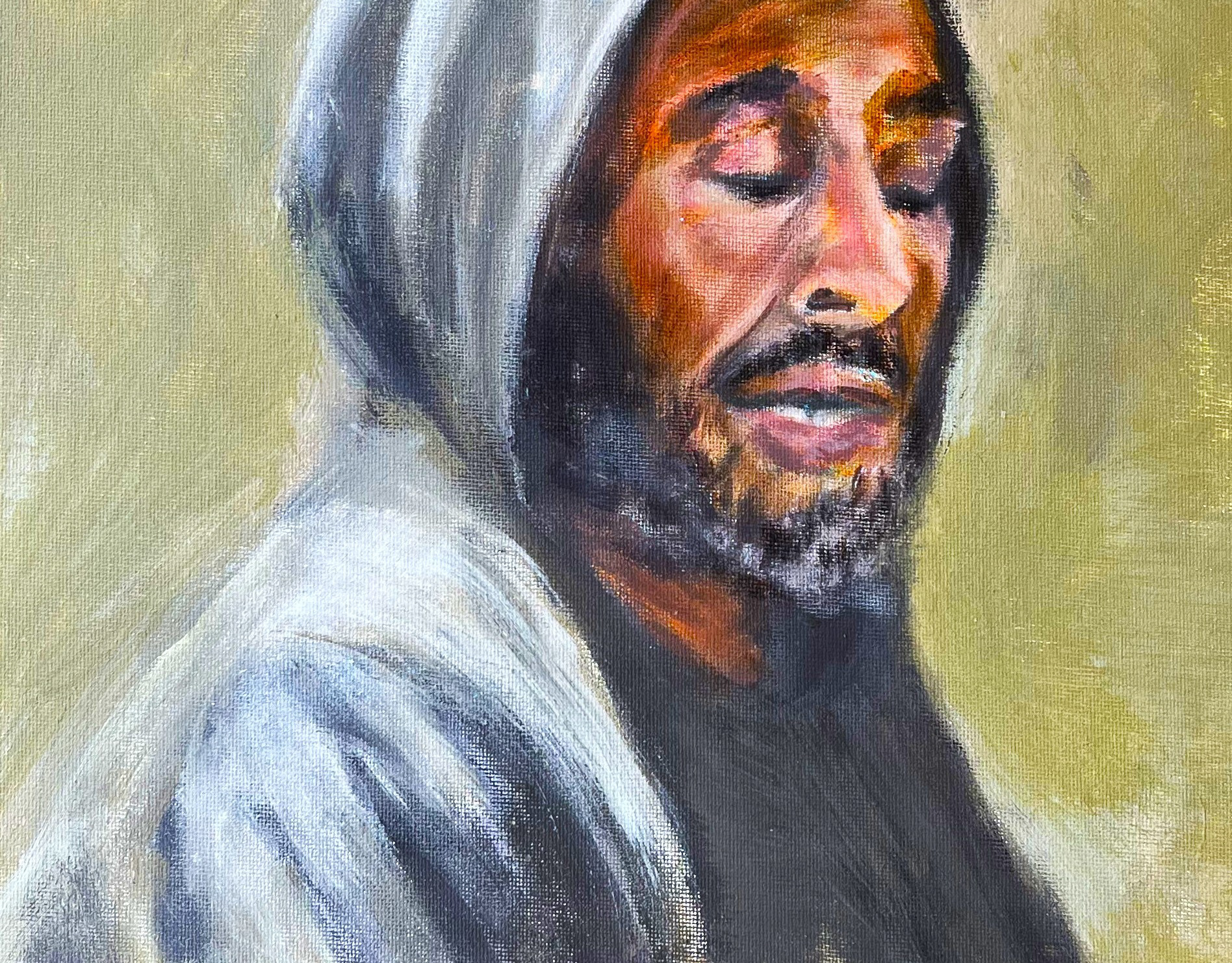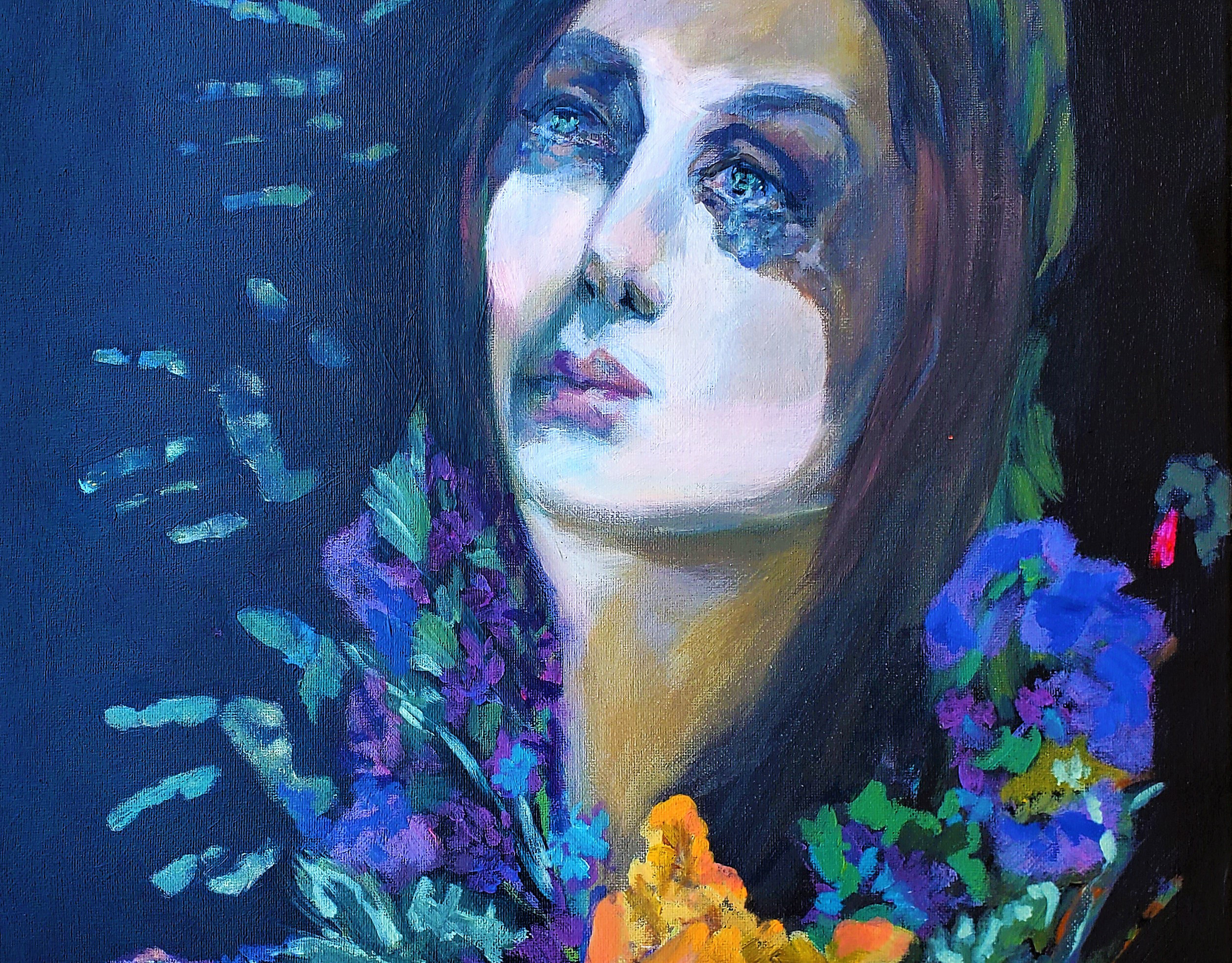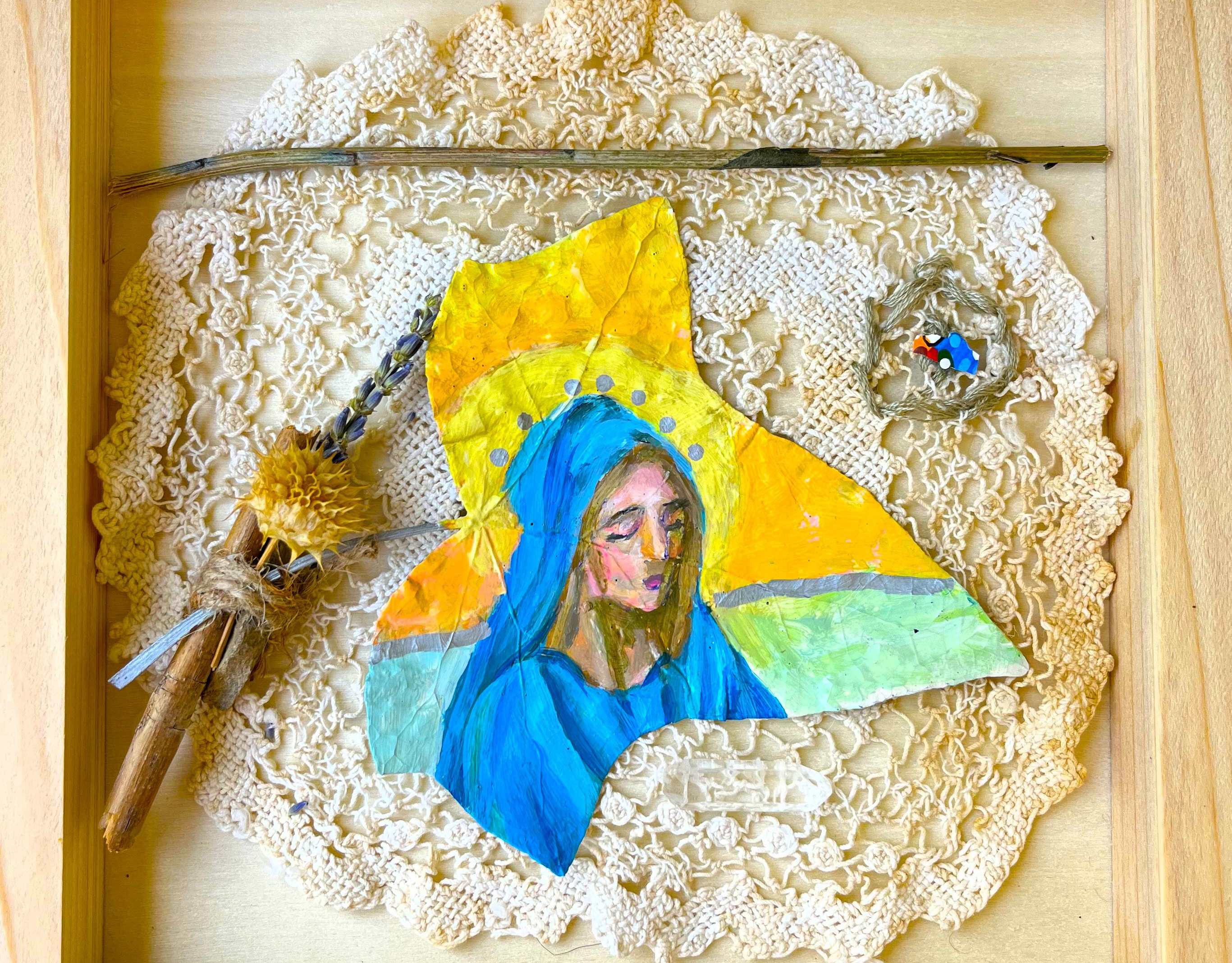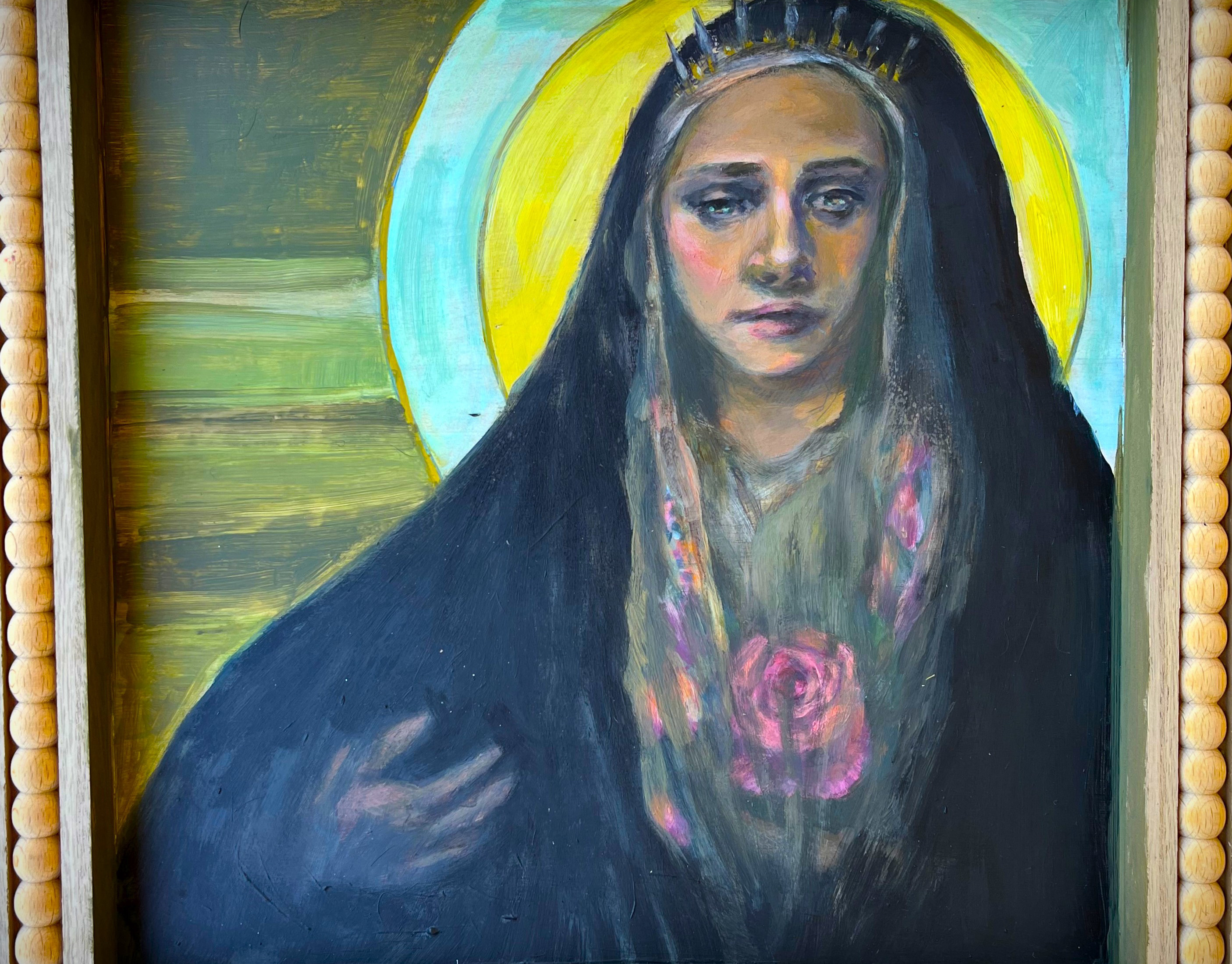 Mary 22x28" acrylic on vintage canvas