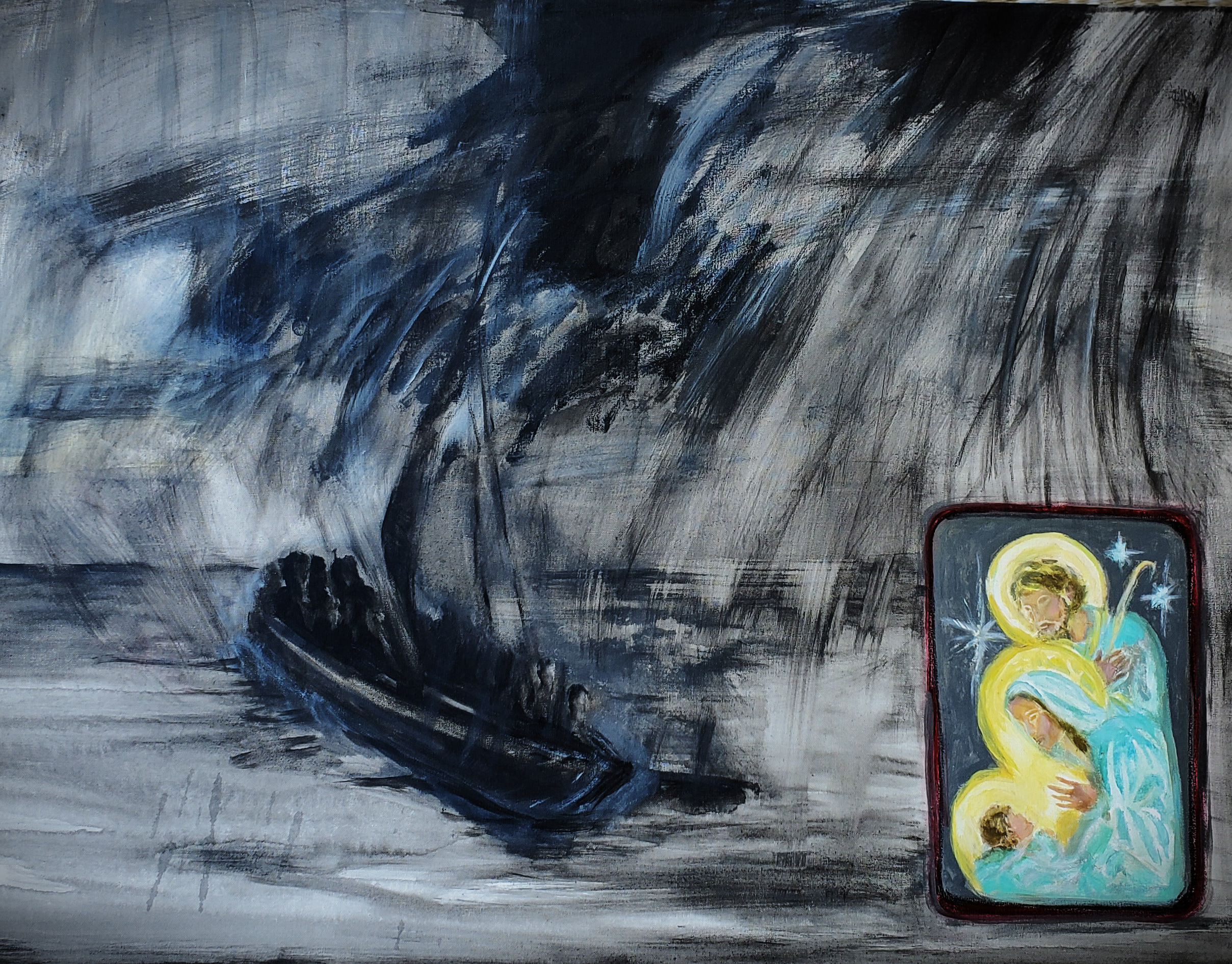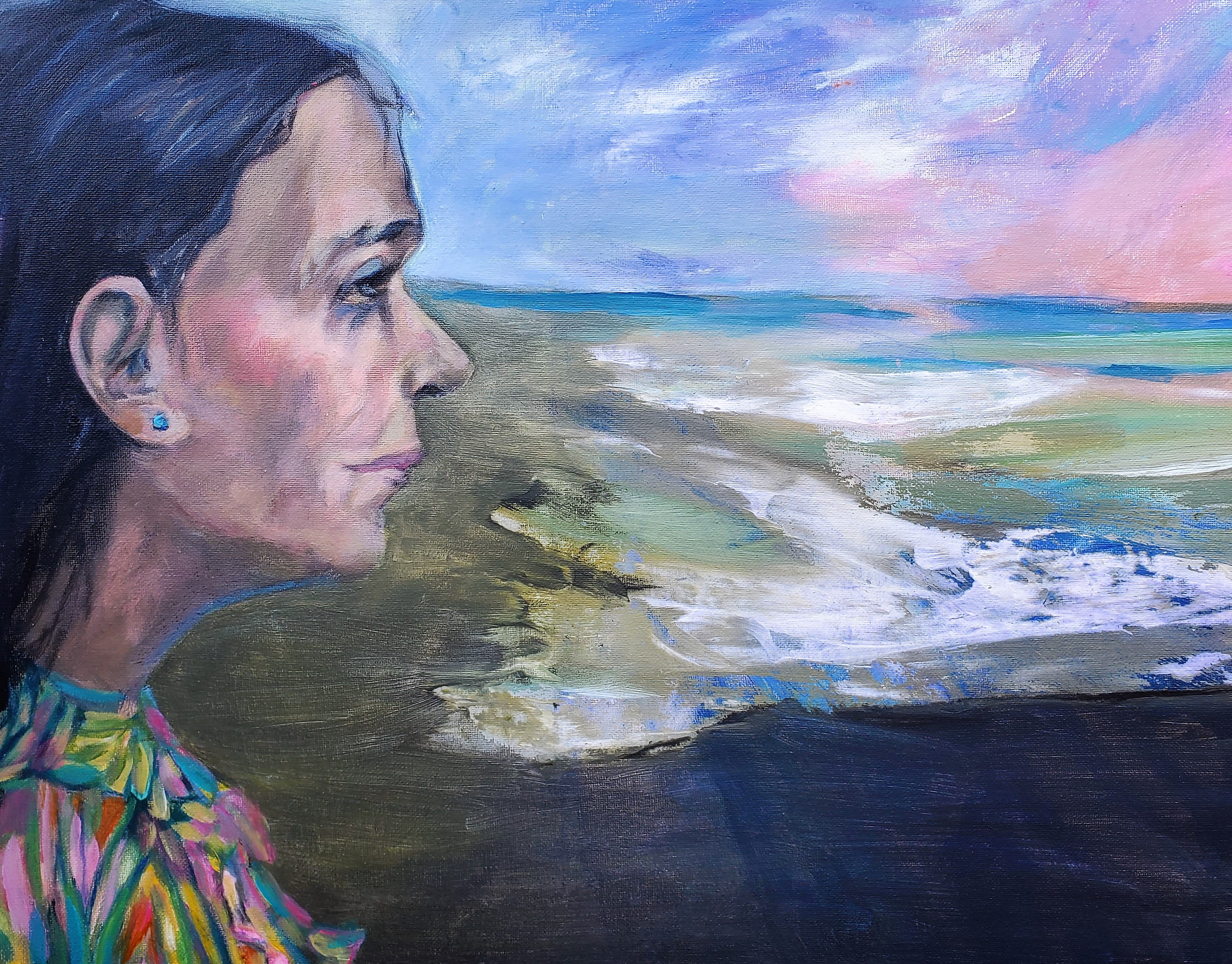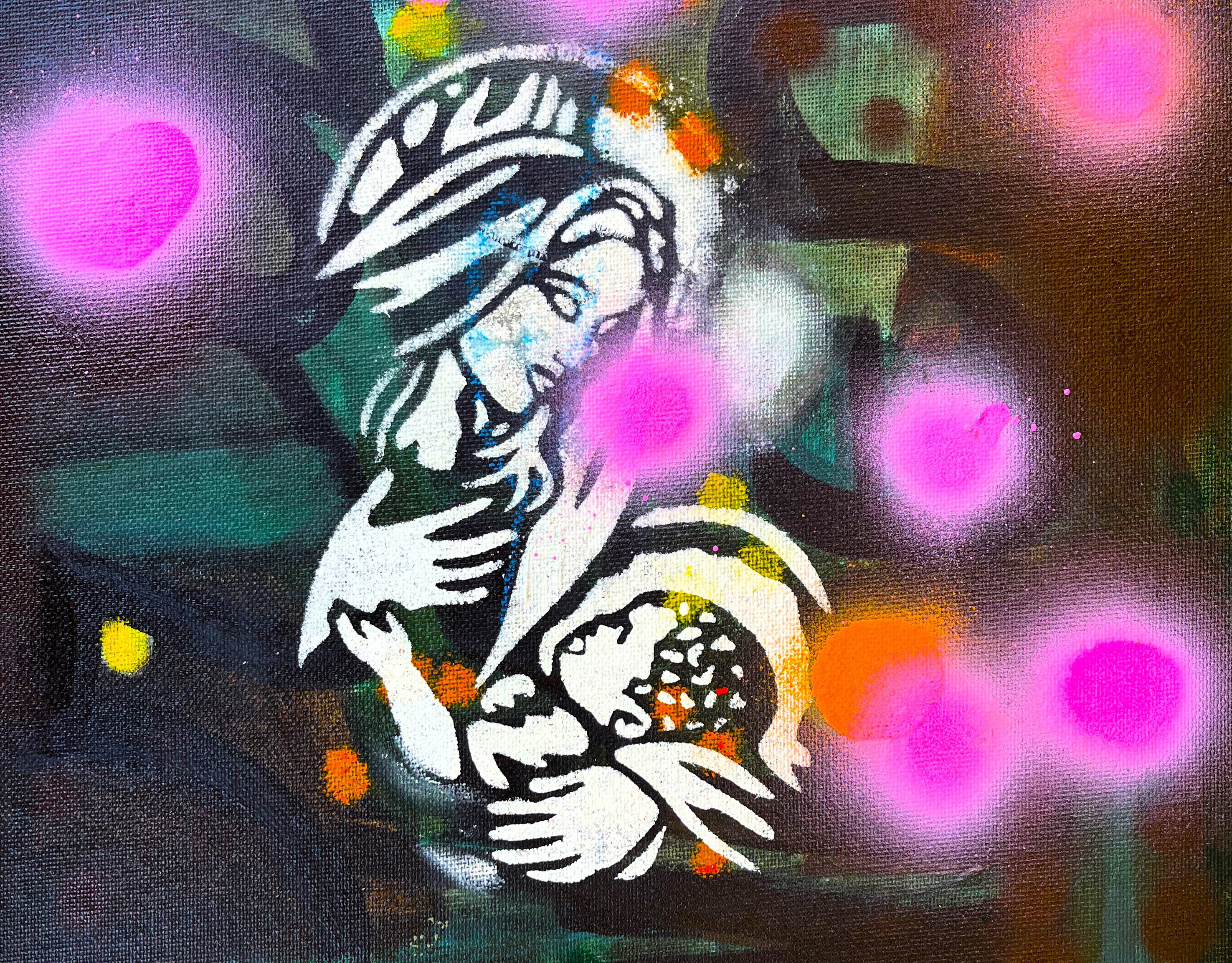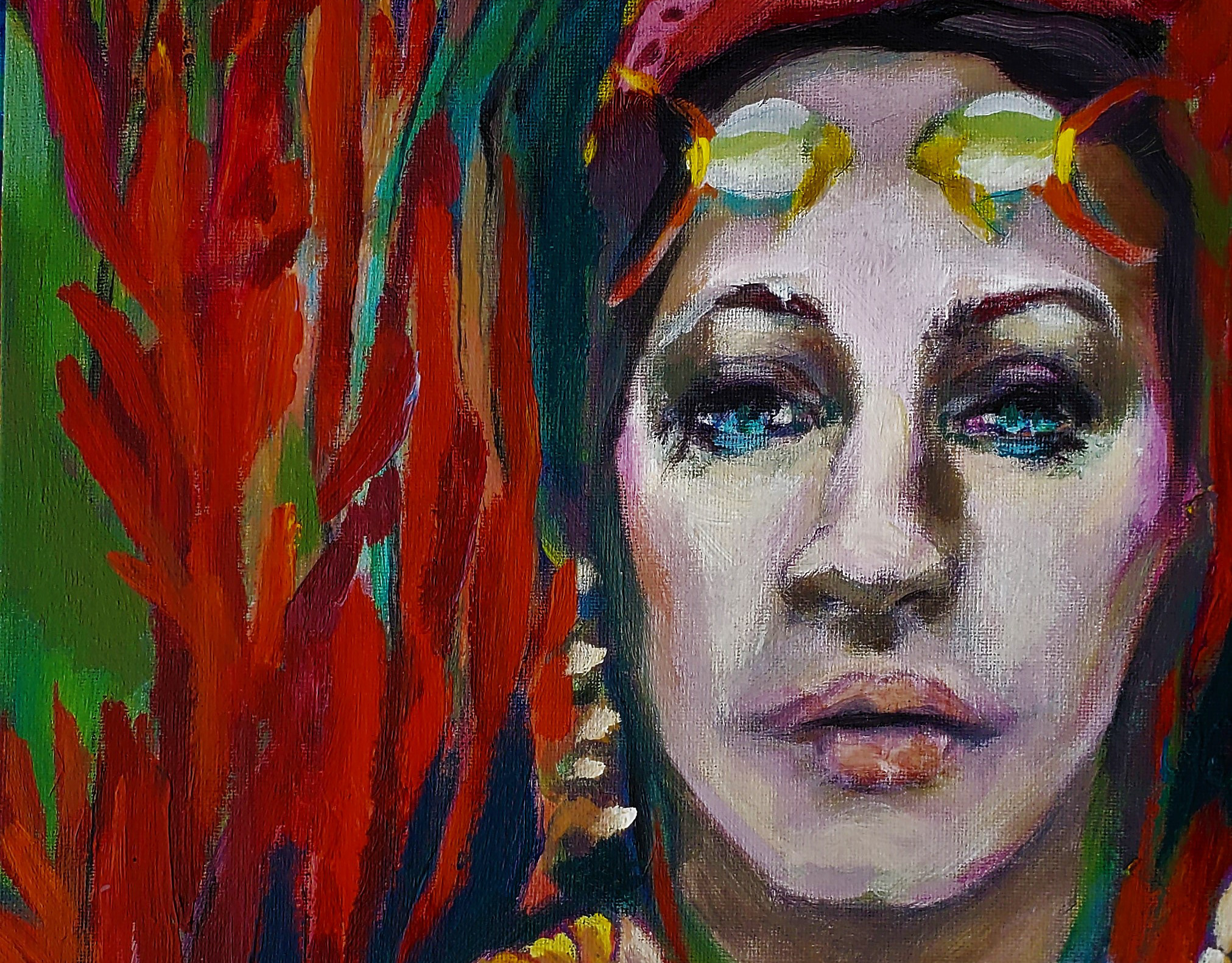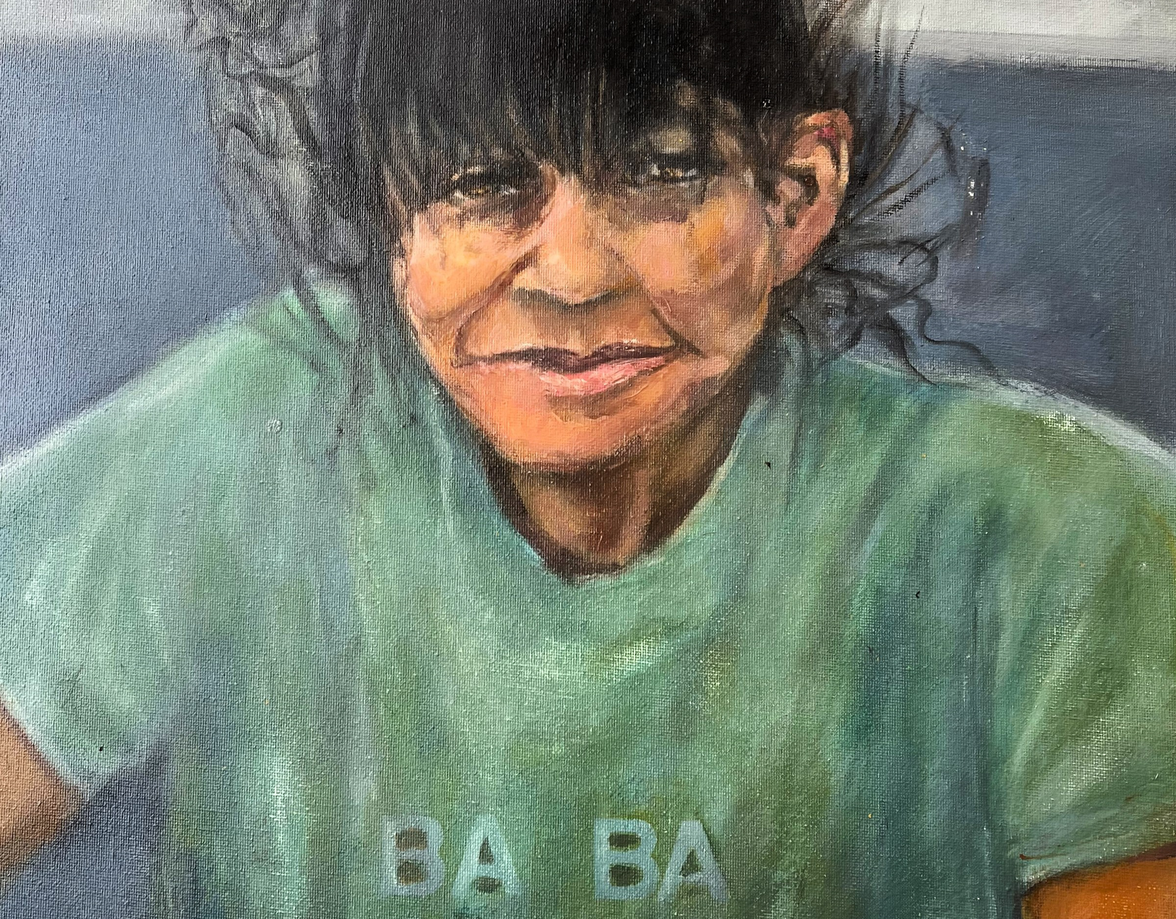 Mary 22x28" acrylic on vintage canvas