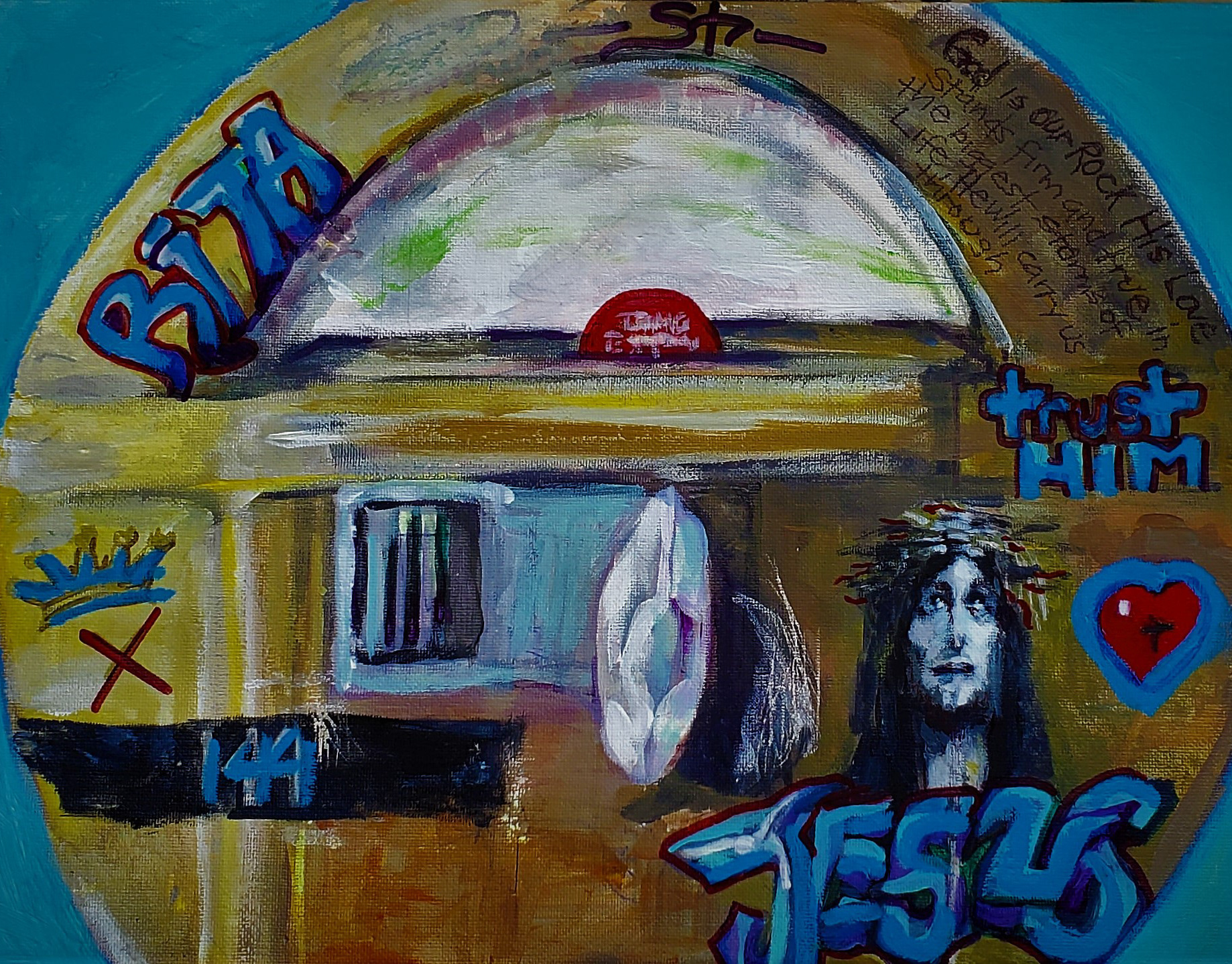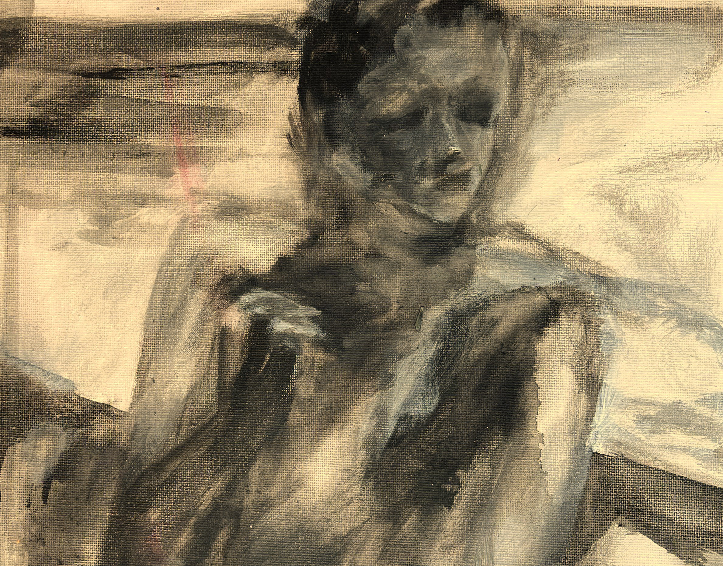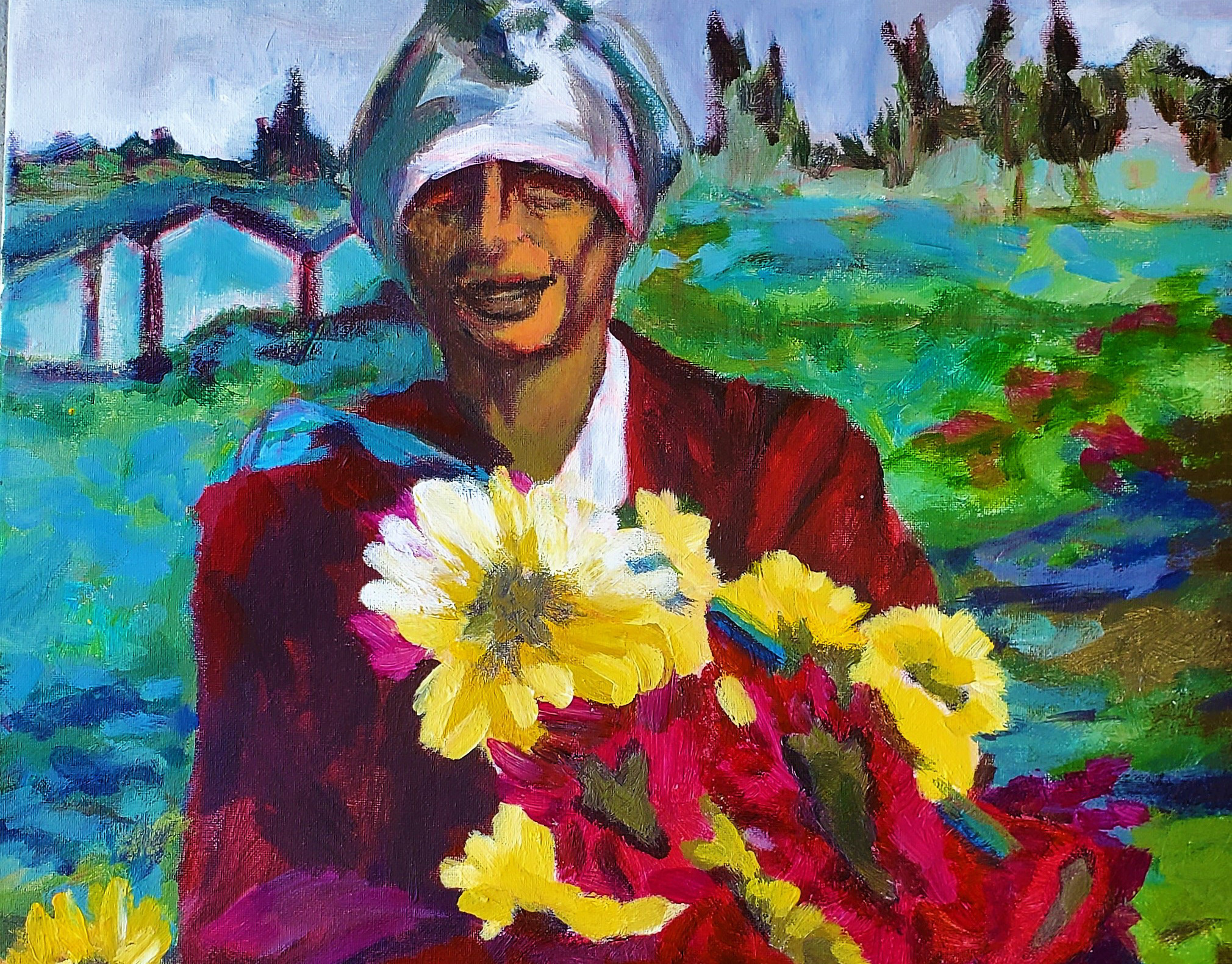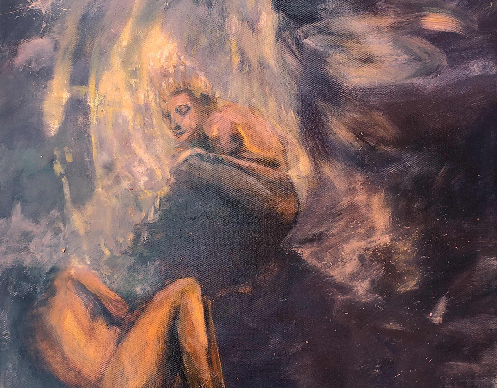 Mary 22x28" acrylic on vintage canvas