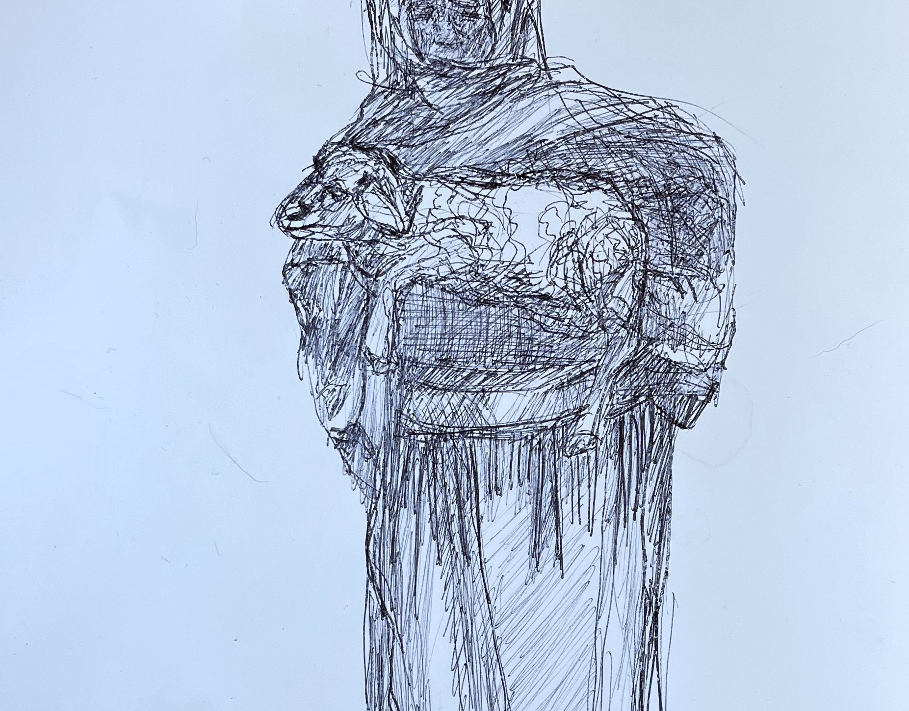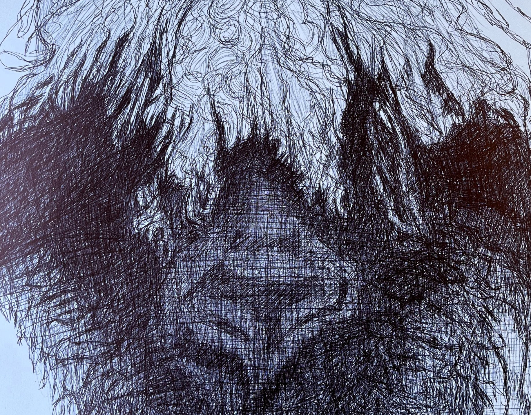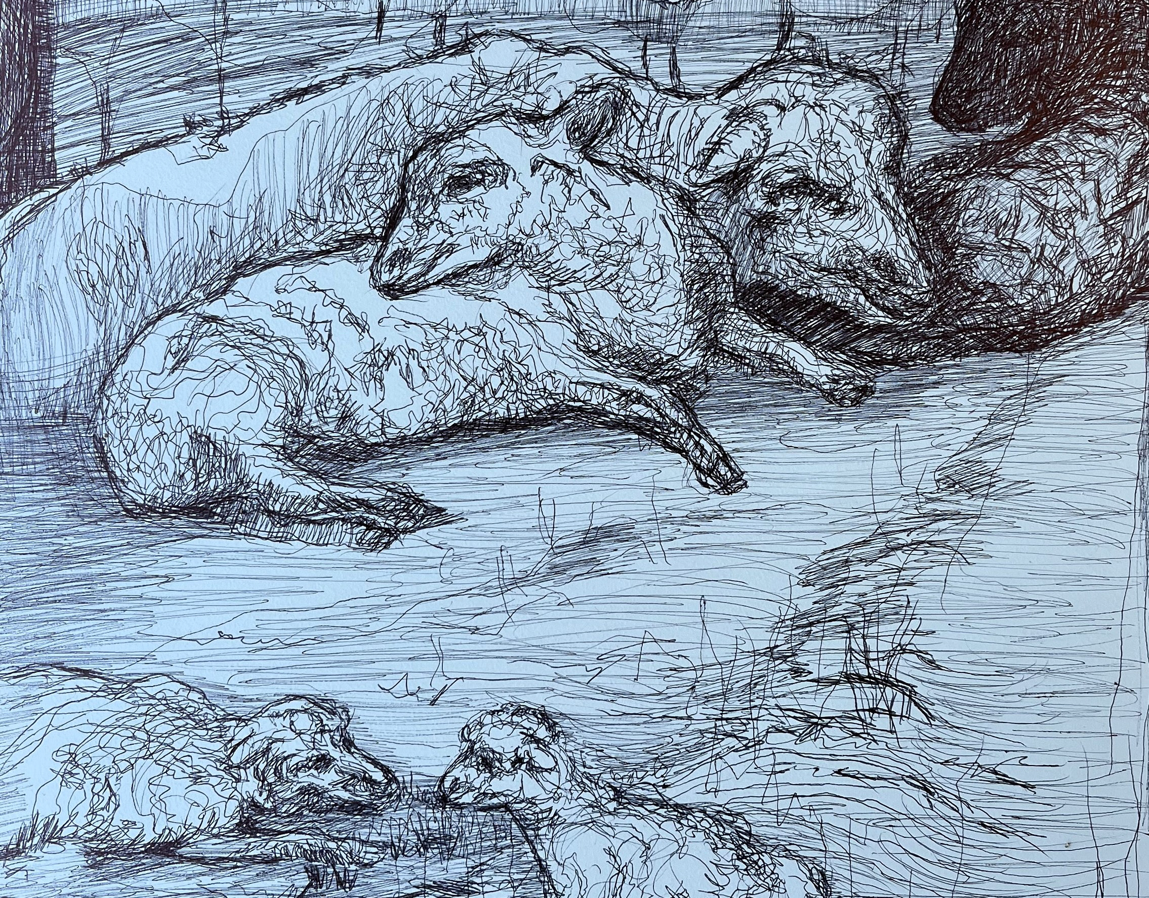 ballpoint pen on painted paper original drawing