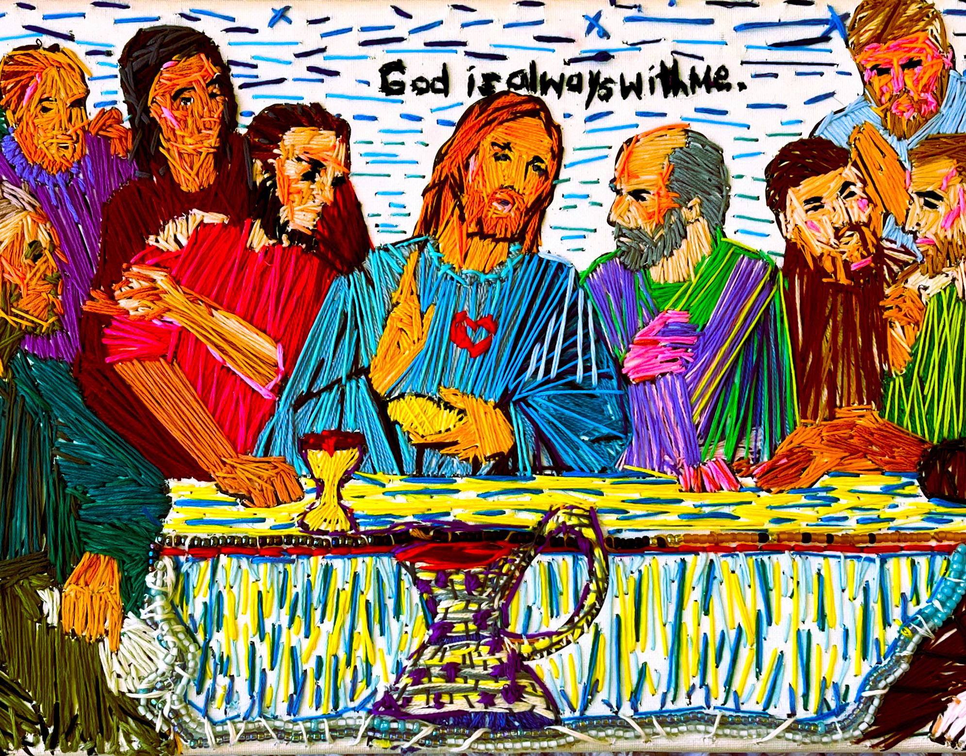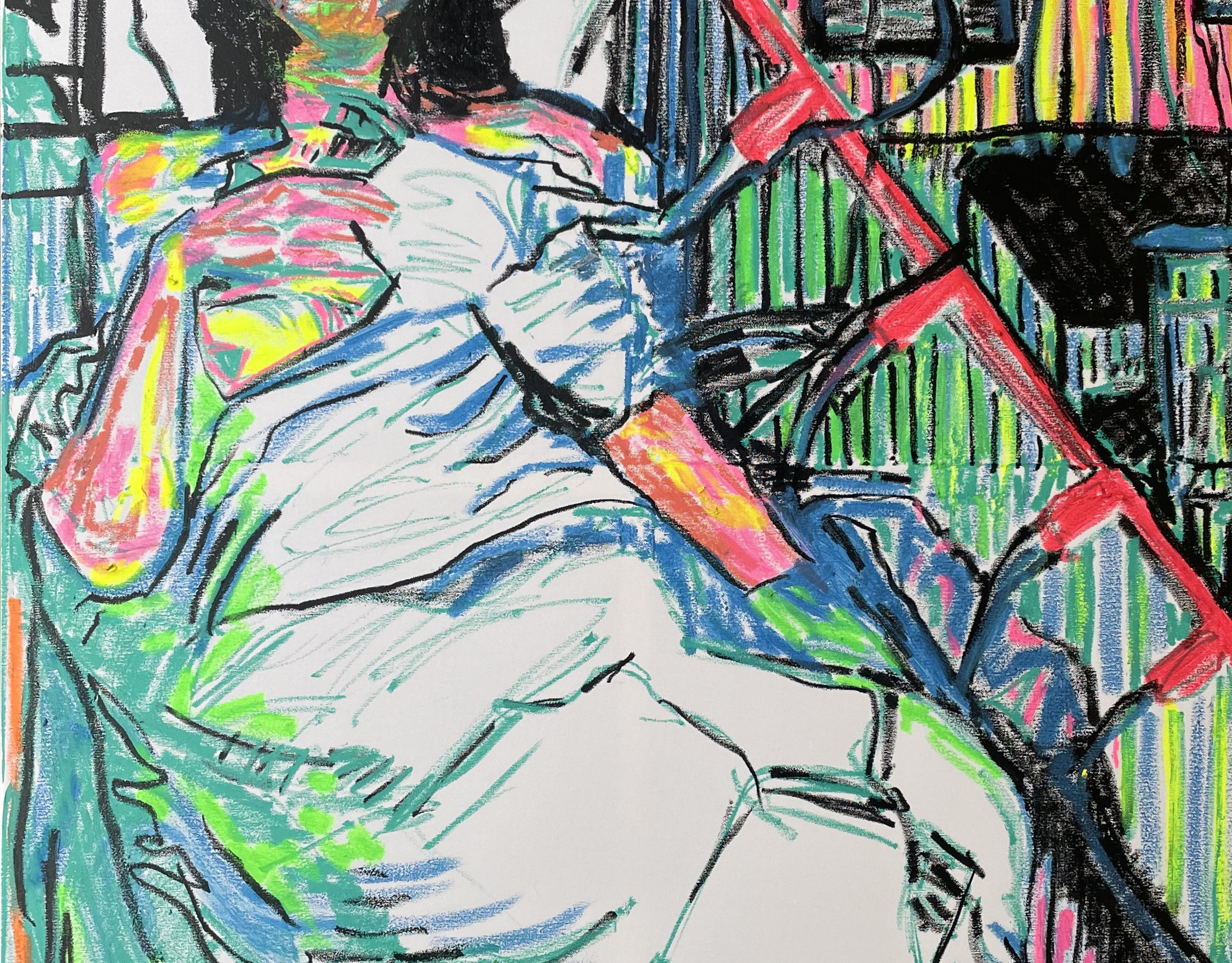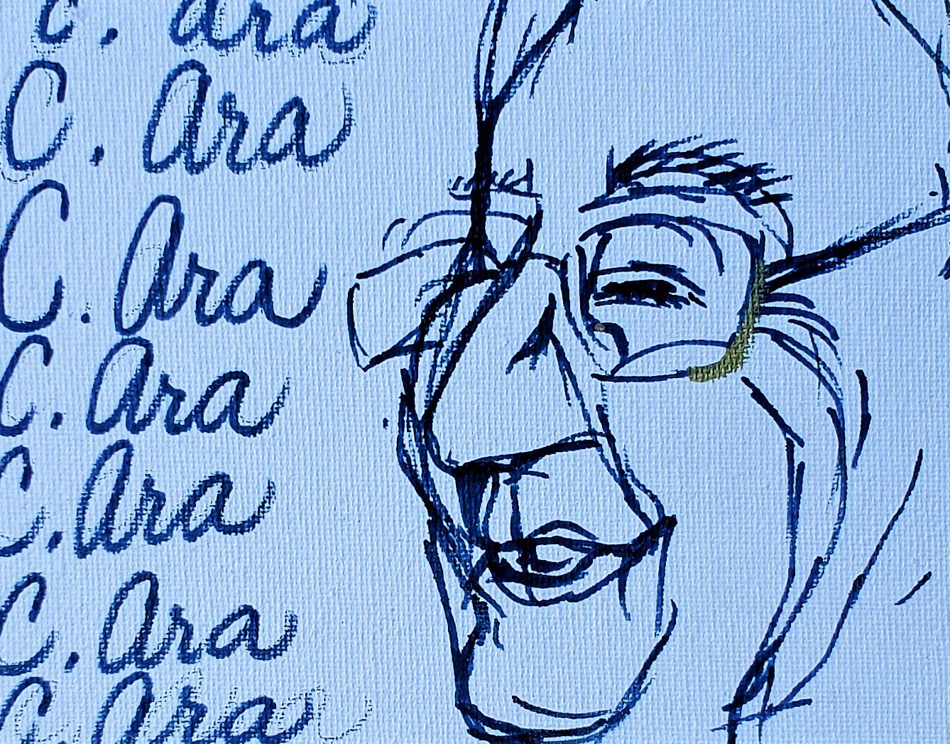 ballpoint pen on painted paper original drawing