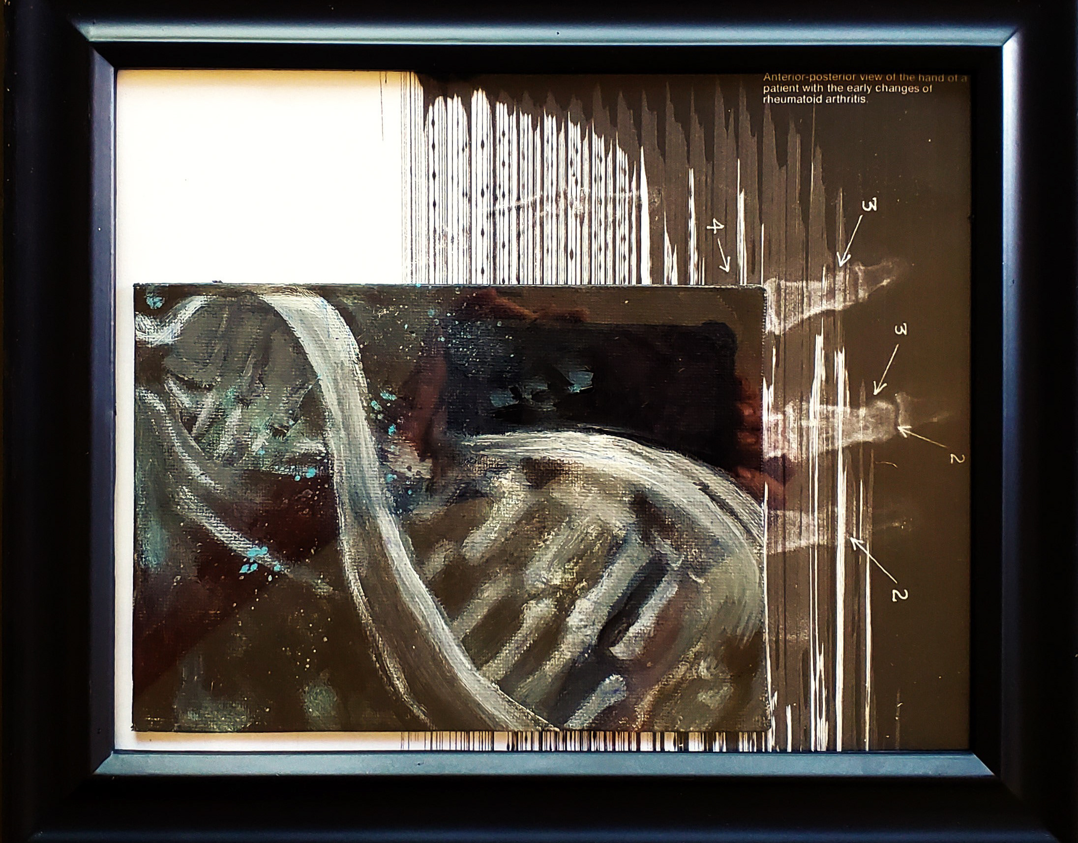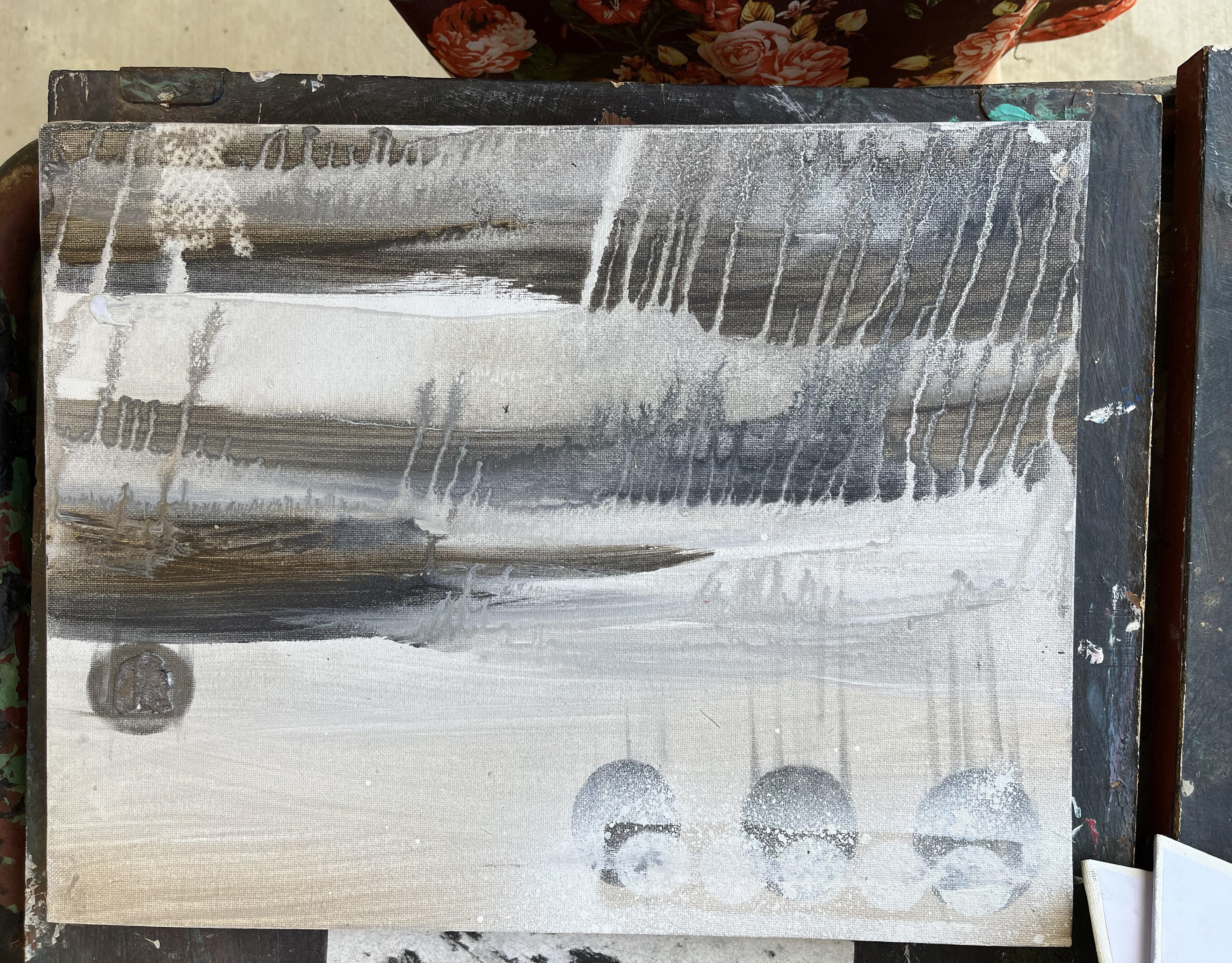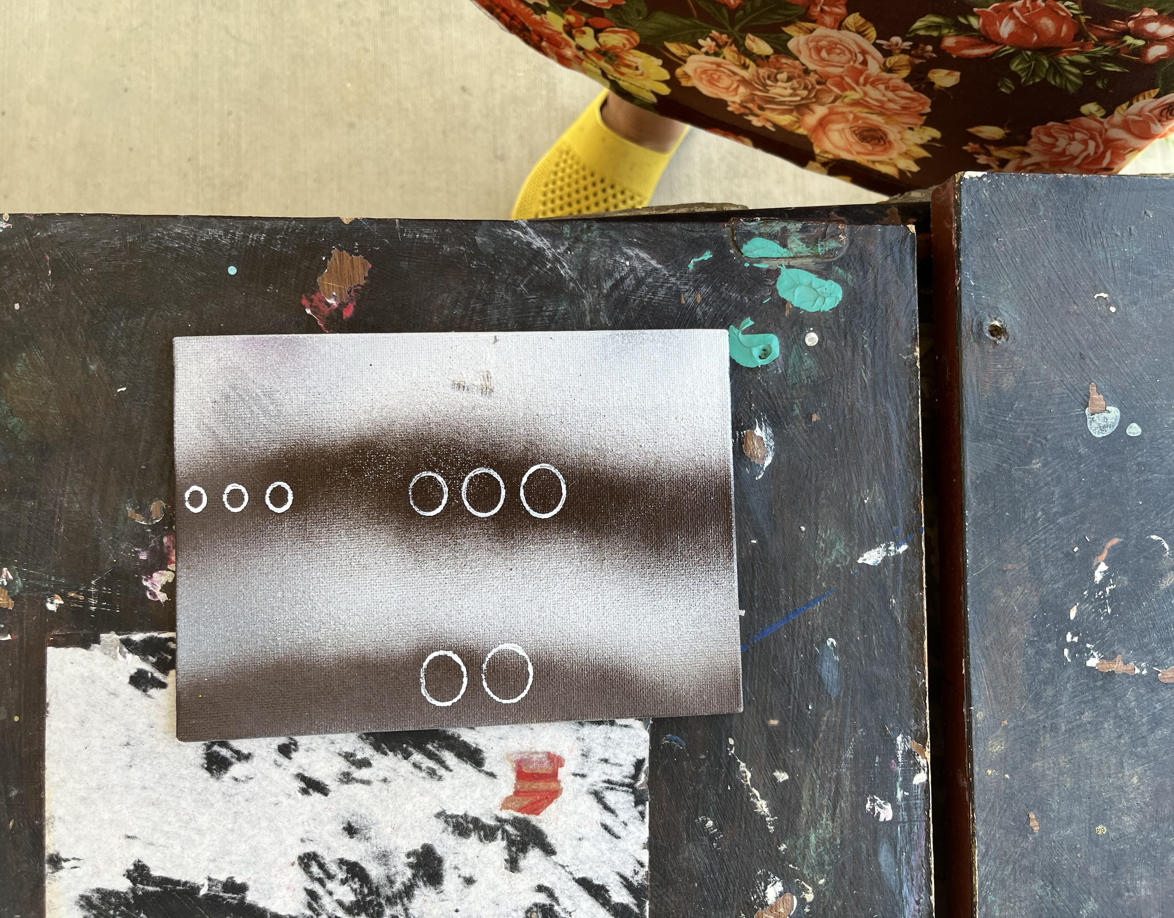small abstract acrylic shot on black and white wood