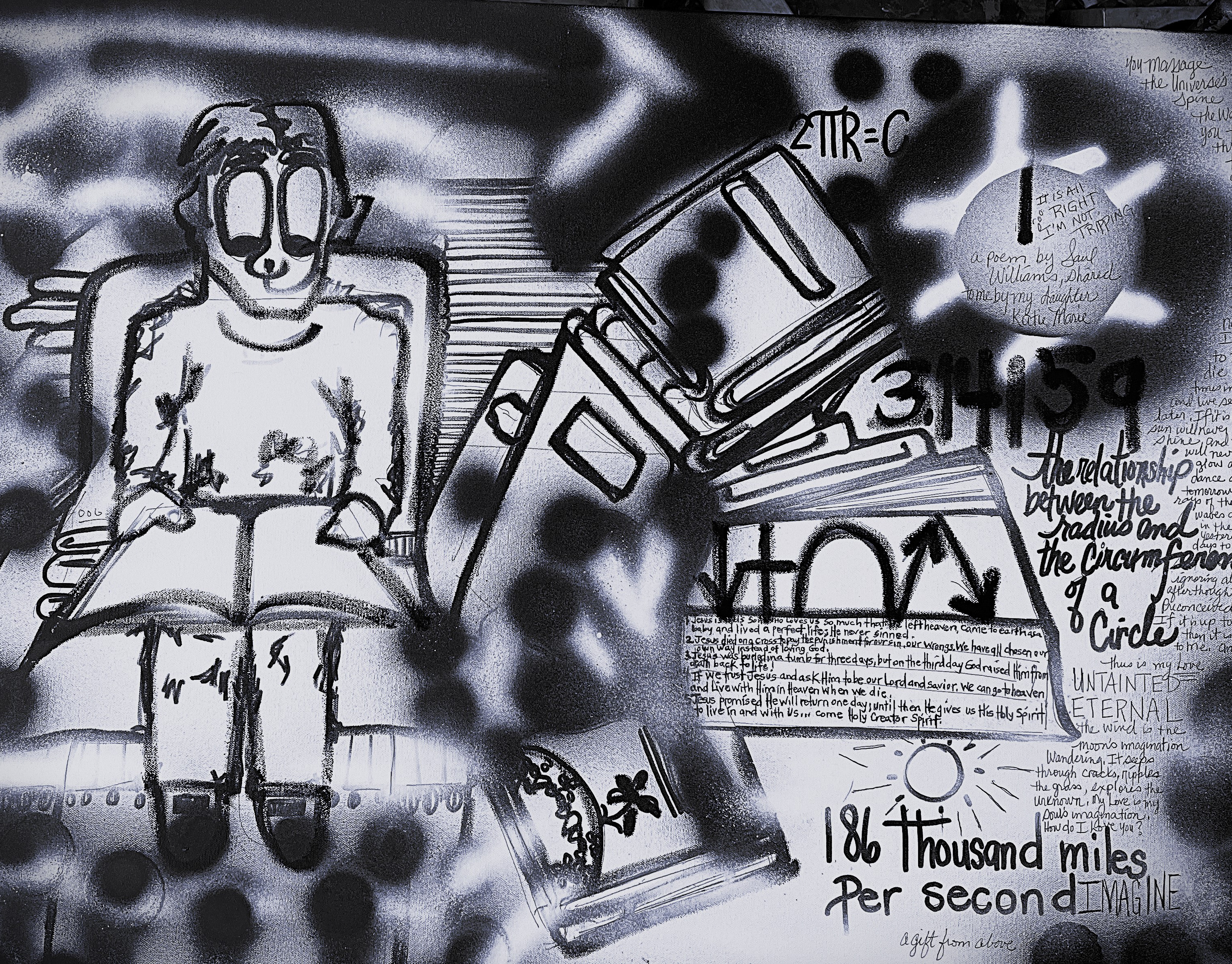 b side of SUSHI painting signed and w/ pen sketch bleed