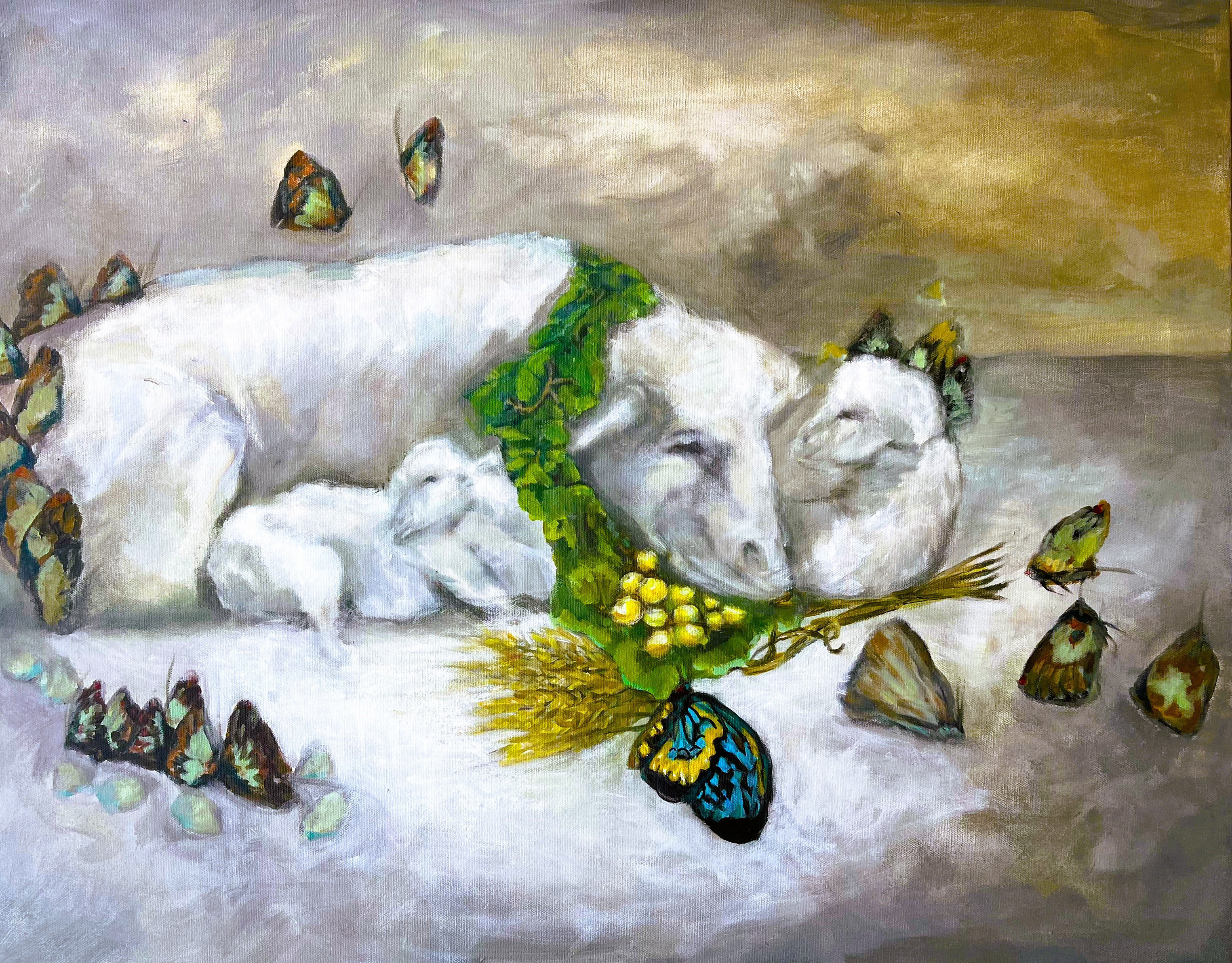 2022 acrylic painting 36x48" TALK IS SHEEP