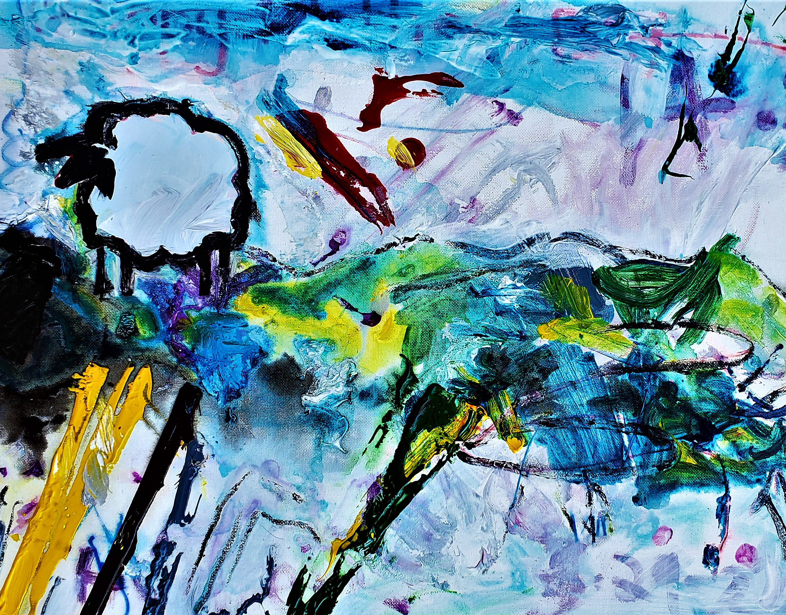 2022 16X20 ABSTRACT SHEEP ON CANVAS CARDBOARD